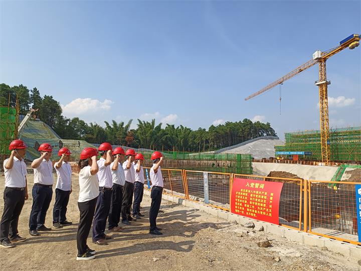 “我志愿加入中國共產(chǎn)黨,擁護黨的綱領(lǐng),遵守黨的章程,履行黨員義務(wù),執(zhí)行黨的決定……”項目建設(shè)施工現(xiàn)場,黨員們面對莊嚴(yán)的黨旗,重溫了入黨誓詞。