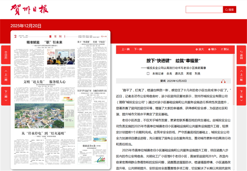 自2021年以來,城投實業(yè)公司已累計實施完成7個老舊小區(qū)改造項目,總投資9000萬元,惠及78個老舊小區(qū)、234棟樓共347個單元。這一系列民生工程的扎實落地,不僅擦亮了城市的幸福底色,也為賀州持續(xù)推進城市更新、提升綜合承載能力注入了持久動力。